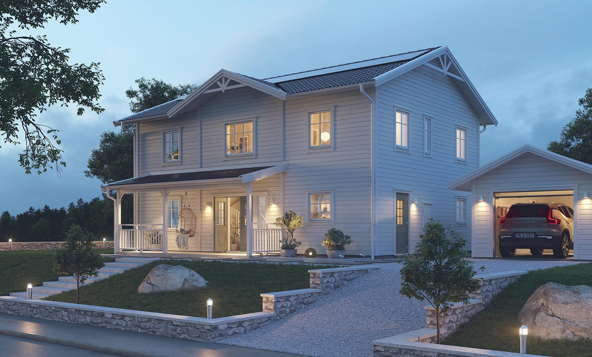 Ett trähus från oss i Stockholmsregionen drar i snitt 35 kWh per kvadratmeter och år. Det vi vill säga med det är att huset är energisnålt och kommer vara snällt mot din plånbok. Vill du sänka din månadskostnad ytterligare finns möjlighet till färdigmonterade solceller.