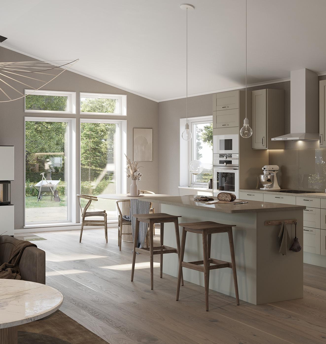 Till din hjälp har du ett av marknadens bredaste sortiment från välkända och noga utvalda leverantörer. Läs mer om dina invändiga val i vår tillvalsbroschyr. Kontakta trähussäljaren för mer information .