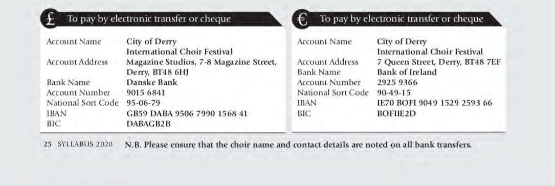 N.B. Please ensure that the choir name and contact details are noted on all bank transfers.