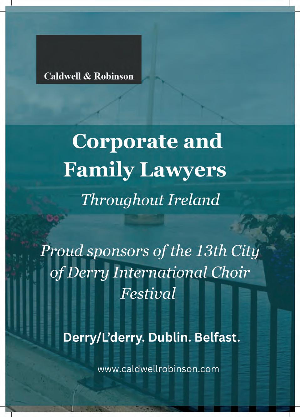 I wish to record my sincere thanks to all our funders, sponsors, supporters and volunteers, who continue to help make the City of Derry International Choir Festival a bright, shining beacon of artistic excellence for the city, the region and the country.