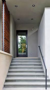 The overall form of the house is simple in its lines and edges, but dynamic in its formal expression. The exterior surfaces fold throughout the building’s mass, defining spaces while also creating the enclosure. Exterior spaces are integrated with interior spaces to provide unique living experiences while filtering light into the interior through floor to ceiling glass doors and windows. Stucco and limestone also helped to blend into the surrounding context and allow the house to have a bold, yet non-aggressive presence. The stucco portion of the buildings envelope is defined by 2 interlocking volumes; one is light grey and the other is dark grey. Other exterior materials for the house include: steel, equitone (cementitious panel), glass, cedar, bluestone pavers, and architectural concrete. A black break metal was used to wrap any exposed structural steel. Limestone copings were used to cap all masonry walls and Thermoplastic polyolefin (TPO) single-ply roofing membranes were used on the roofs. The gates, fences, and handrails were all custom designed made out of steel. This house also incorporates energy saving features such as geothermal heating and cooling as well as a photovoltaic solar panel system.