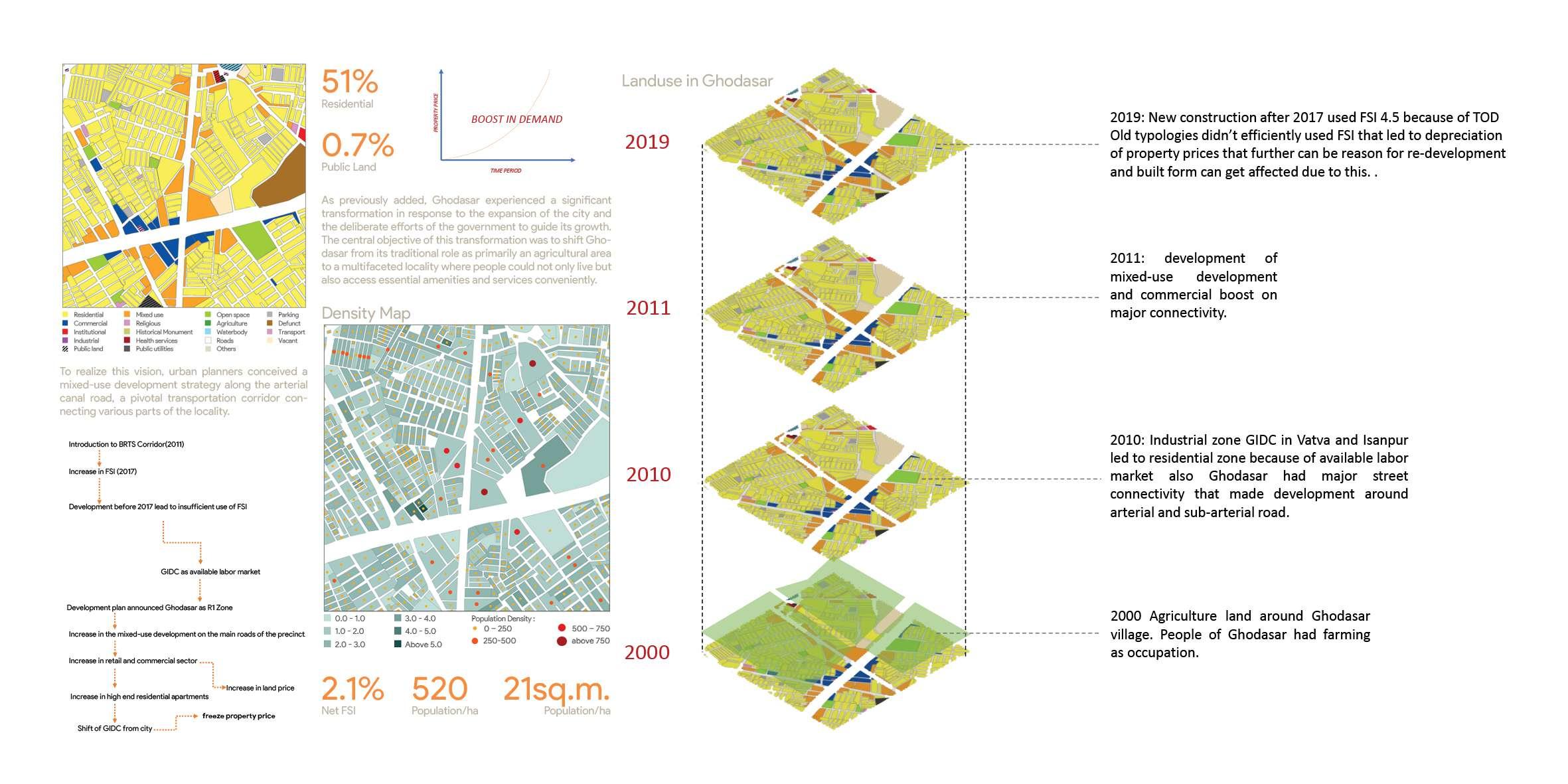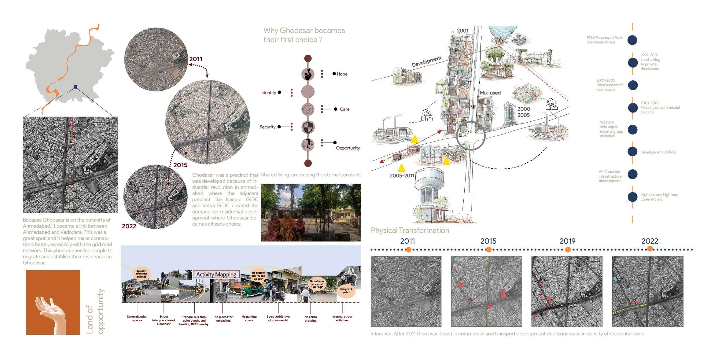 Ghodasar, once a rural village on the outskirts of Ahmedabad, has transformed into a thriving urban hub. Its formal integration into Ahmedabad in 1987 and strategic location between Ahmedabad and Vadodara catalyzed significant urban development. The introduction of the Bus Rapid Transit System (BRTS) and key highways enhanced connectivity, attracting both commercial and residential growth. Modern infrastructure and high-rise apartments have replaced traditional homes, driven by the influx of new residents seeking economic opportunities.