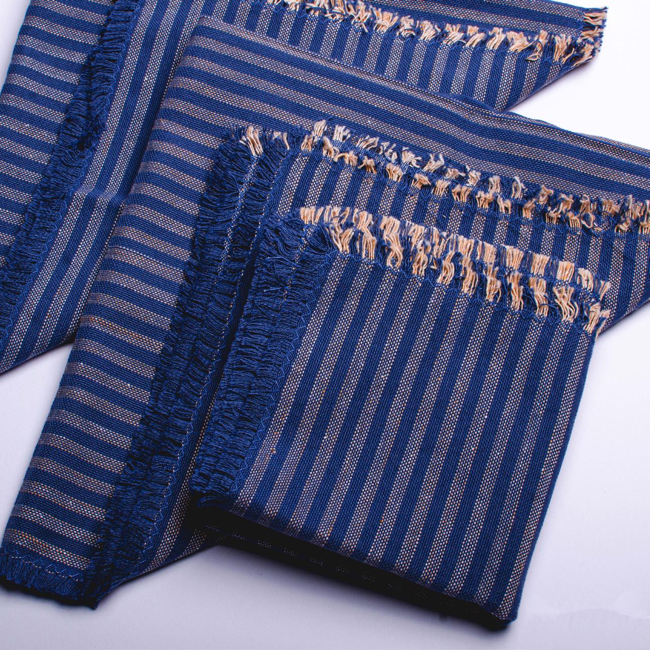 Servilletas%100 algodón orgánico, orilla rústica, tejidas en telar de pedal por talleres Julio Domíguez, (añil-coyushi).
