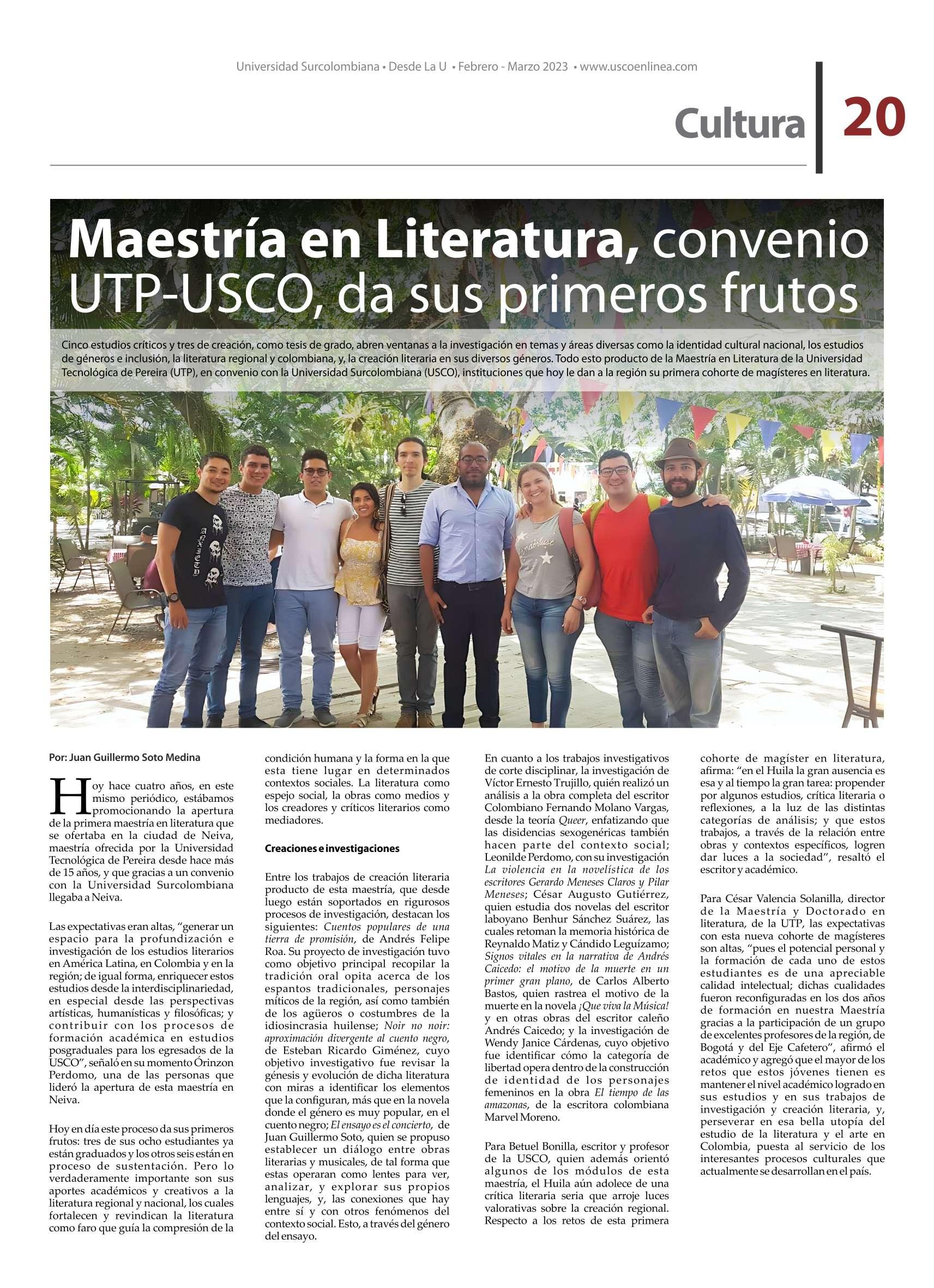 Les invitamos a leer la edición número 68 del Periódico Desde La U, de la Universidad Surcolombiana. Estas son algunas de sus notas: USCO tendrá el primer laboratorio de aislamiento viral para TiLV de Latinoamérica; Novedosa bomba hidráulica para el agro en el departamento del Huila; Por menstruaciones dignas y libres; “Dios, familia, y lucha”.