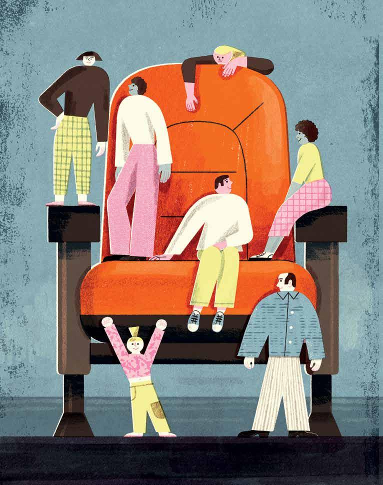scalps peeking over the backs of red velvet seats, backlit by the screen, and wondered who they belonged to, what they were thinking, whether they’d seen this before. I felt a certain kinship with them because we’d chosen the same movie, forgoing whatever new Marvel installments were playing a few screens over. I didn’t know their names but we were temporarily bound by a shared interest and neighboring seats.