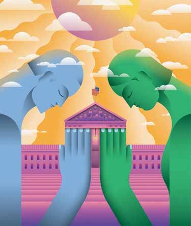 Constitutional scholars Stephanie Barclay (page 15) and Steven Smith (page 70) discuss how courts best accommodate diverse religious expression from Apache coming-of-age rituals to school prayer. Paul Edwards of the Wheatley Institute leads a discussion with father-daughter duo William and Danielle Allen, who see the Declaration of Independence’s importance from two different political perspectives (page 66). John Yoo, who advised Vice President Mike Pence on his duties in certifying the 2020 election, discusses calls on the left and the right to revise the U.S. Constitution (page 62) while Tara Leigh Grove tells us how to disagree better (page 80).