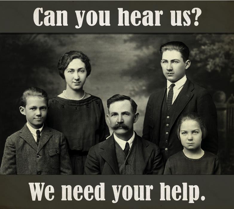 We are your family, your ancestors from the past. We want to be remembered and need your help. Our records and stories need to be found and preserved for future generations so they can learn from us which may strengthen and help them in their lives.