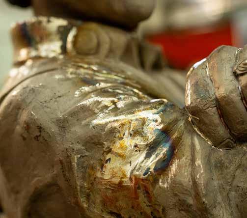 STATUES ARE STILL BUILT THE OLD-FASHIONED WAY, WITH MOLTEN BRONZE POURED INTO MOLDS. LATER, THE BRONZE IS TREATED TO ACHIEVE A FAMILIAR PATINA.