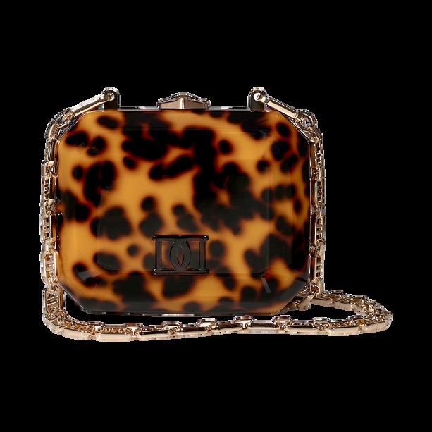 This chic minaudière clutch bag features a stylish fox head clasp closure and a signature cross-body chain. It can be worn with or without the chain, allowing for versatile styling options Crafted from durable plexiglass, this bag combines elegance with functionality, making it a perfect accessory for any occasion Its refined design ensures it stands out while effortlessly complementing your ensemble
