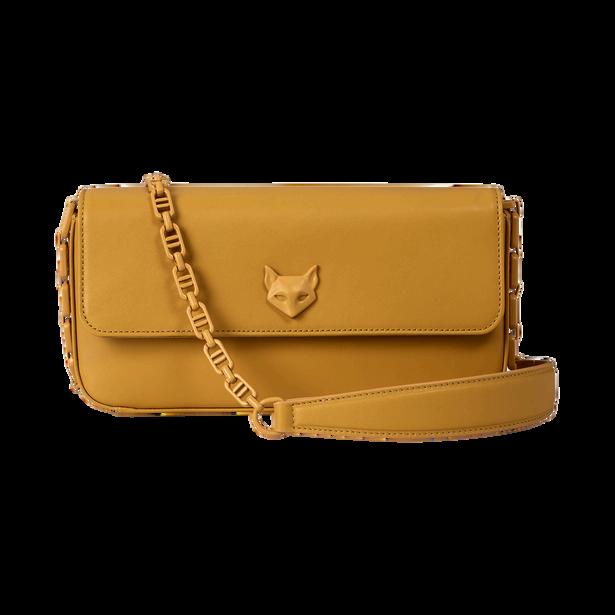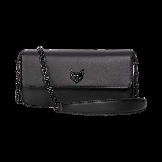 Monochromatic in design, this day-toevening clutch is crafted from premium leather and features a timeless silhouette that complements any outfit The versatile chain strap allows for shoulder or crossbody wear and can be adjusted for various styles Striking fox head hardware adorns the front flap, enhancing its elegant appeal