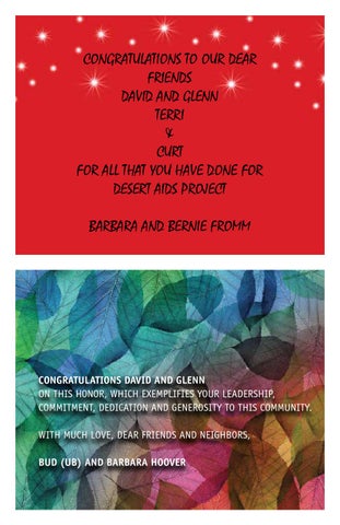 CONGRATULATIONS TO OUR DEAR FRIENDS DAVID AND GLENN TERRI & CURT FOR ALL THAT YOU HAVE DONE FOR DESERT AIDS PROJECT BARBARA AND BERNIE FROMM