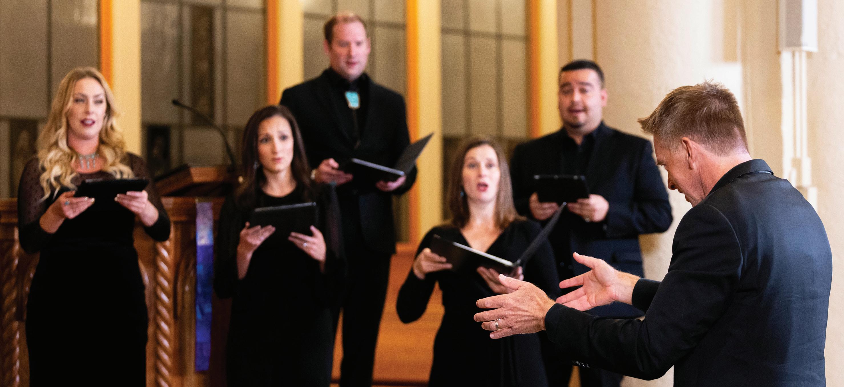 The Desert Chorale has the privilege of performing in some of the most beautiful and historic venues in New Mexico that provide the acoustic quality needed for excellent choral performances. While many of the venues and the music we sing represent specific religious or cultural traditions, we celebrate the diversity of faith, thought, artistry, and human experiences represented by the music performed in these spaces. We hope that this shared musical experience transcends and binds the audience, as we seek to be inspired by the power of great choral music.