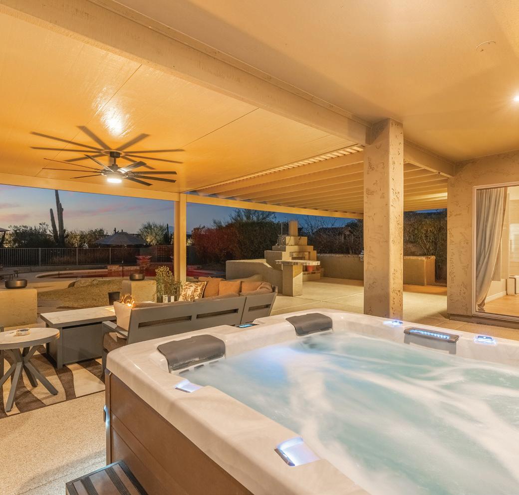 BEHIND, this home offers unparalleled privacy and stunning desert views. Inside, get ready for the ultimate home theatre experience—a space designed for movie nights and game days with modern electric reclining seats, a brand-new JVC 4K projector (2024), an Arcam high-end theatre receiver (2024), and JBL professional cinema speakers (2024). The open-concept floor plan brings in abundant natural light and thoughtful design, creatinga home that is both functional and breathtaking. The chef’s kitchen is built for hosting, with an expansive island, double ovens, an eat-in nook, and a built-in coffee bar with stylish floating shelves.