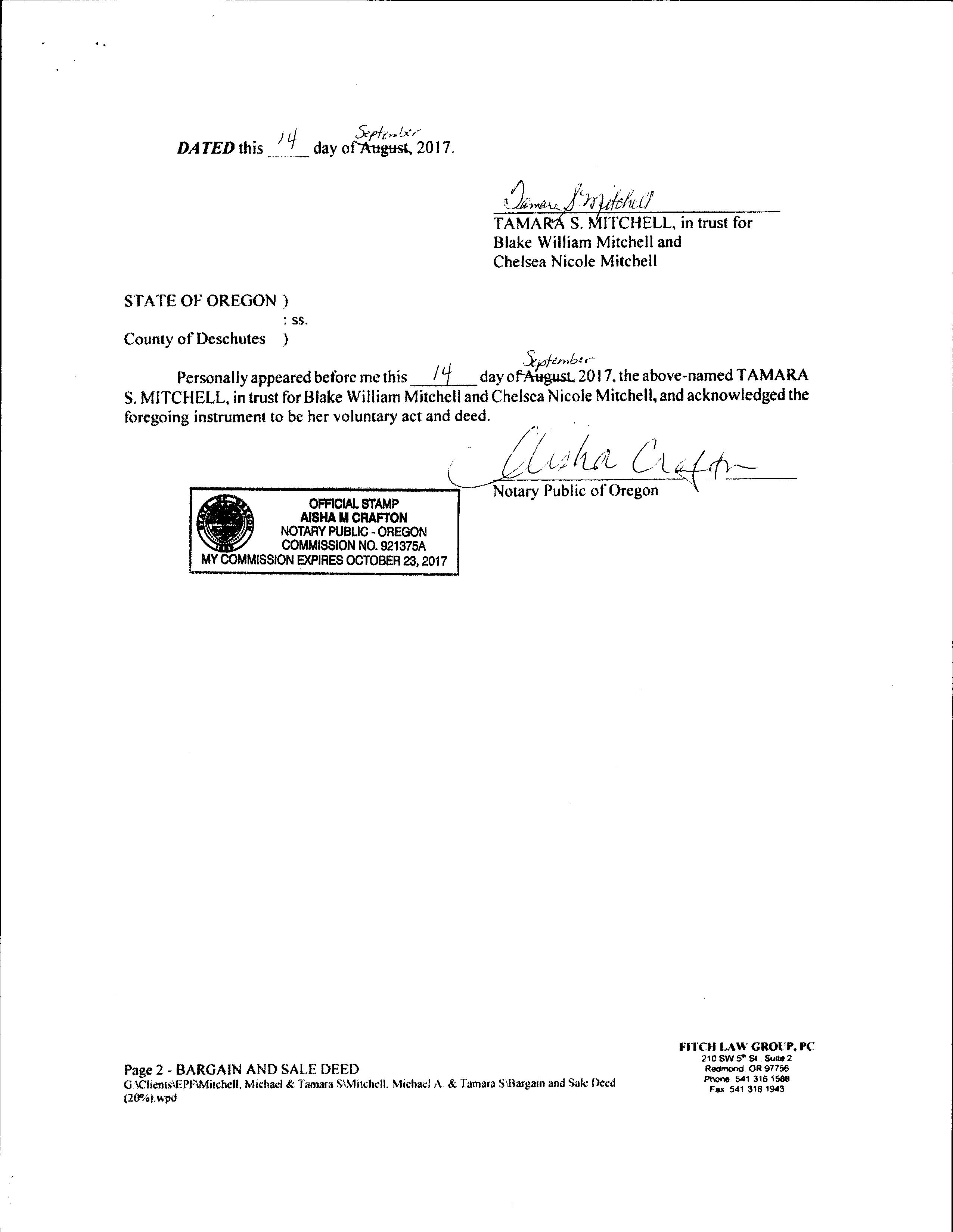 By Mail to Deschutes County Tax, PO Box 7559 Bend OR 97708-7559