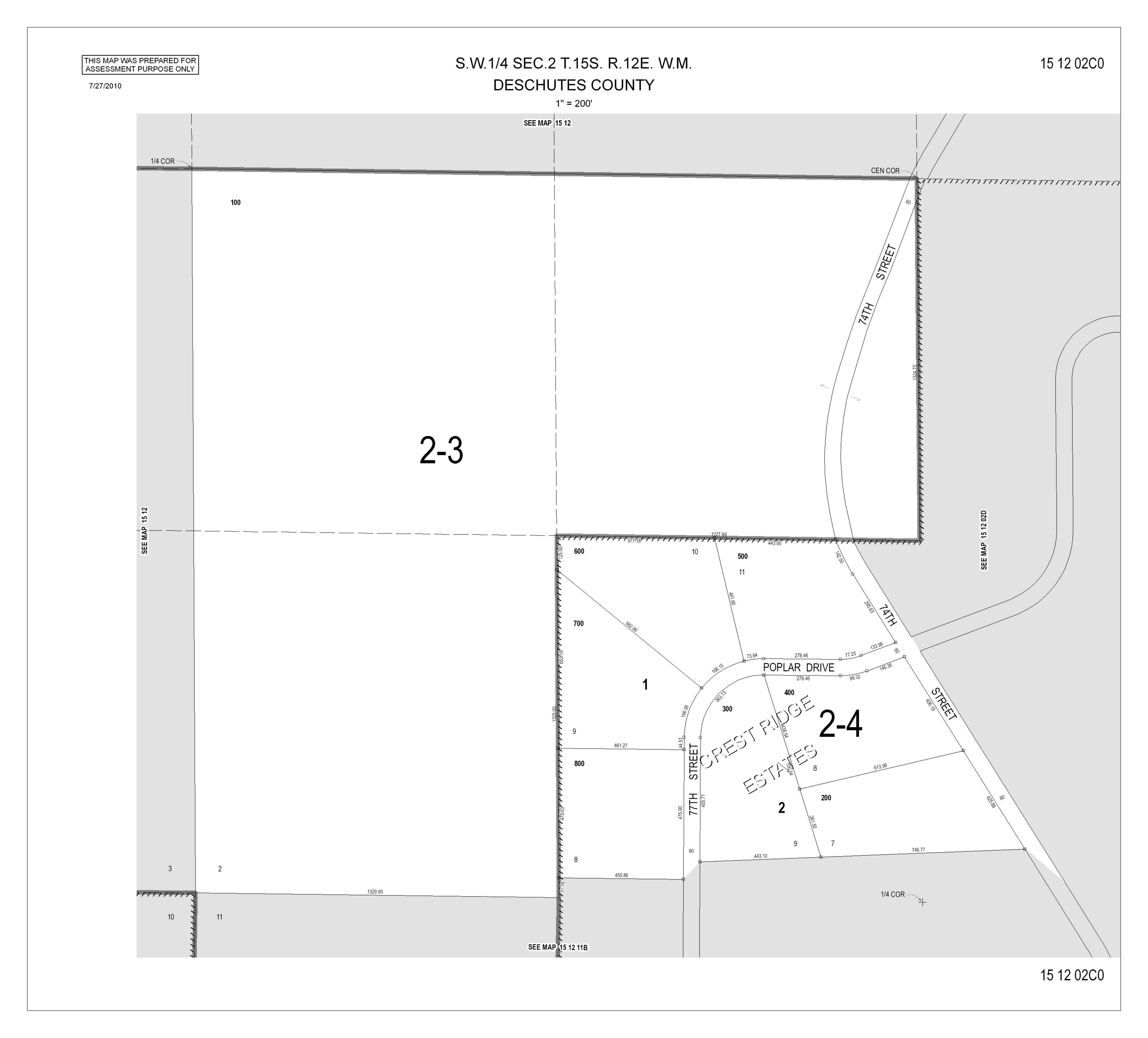 Review of digital records maintained by the Deschutes County Assessor’s Office, Tax Office, Finance Office, and the Community Development Department indicates that there are no special tax, assessment or property development related notations associated with this account. However, independent verification of the presence of other Deschutes County tax, assessment, development, and additional property related considerations is recommended. Confirmation is commonly provided by title companies, real estate agents, developers, engineering and surveying firms, and other parties who are involved in property transactions or property development. In addition, County departments may be contacted directly to discuss the information.