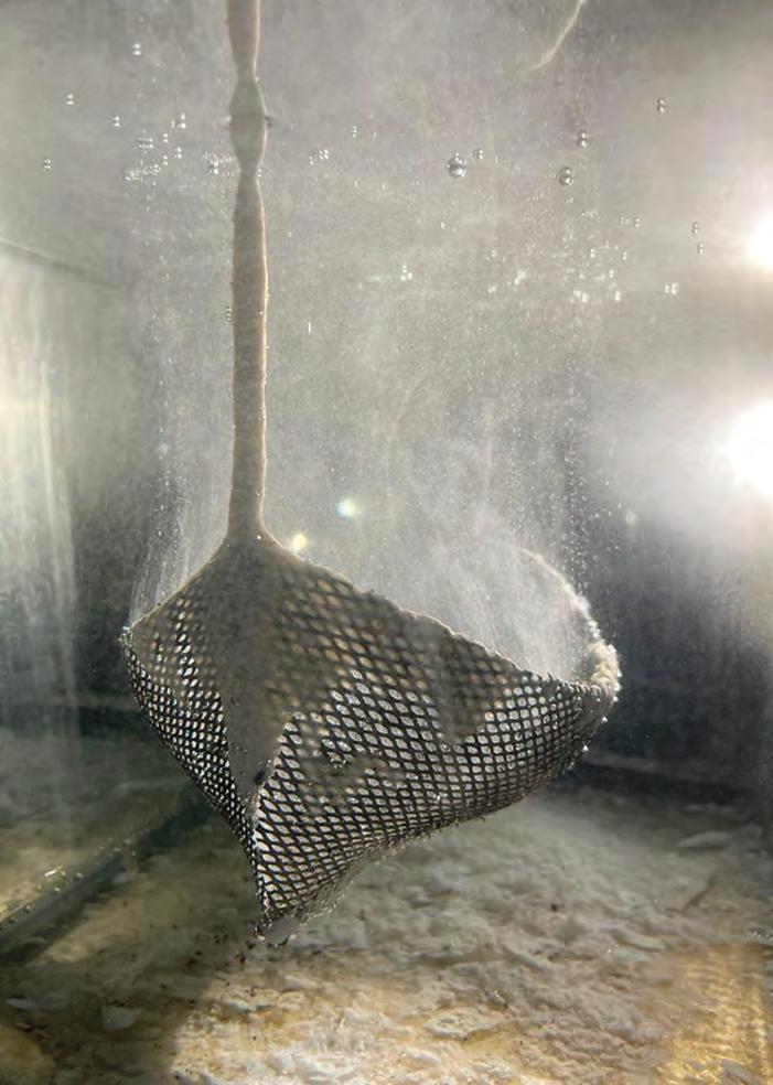 Para el Estudio Metabólico de Lauren Bon, sus proyectos a largo plazo como “Bending the LA River” pretenden devolver lo incontrolable a la naturaleza. Realizando una ingeniería inversa de los humedales los cuales fueron destrozados por la transformación de un río libre y desbordado en una esclusa de hormigón, su arte es el de una infraestructura de la transformación. En Palm Springs, ha recreado un estudio-laboratorio que utiliza agua extraída del Salton Sea y luz solar para producir, mediante acumulación geoquímica, un modelo a escala real del corazón de una ballena azul. Es a través del arte como descubrimos la posibilidad de nuevas formas de transformar los materiales. El agua contaminada se cataliza para crear una reacción química que, a su vez, crea las posibilidades de nuevos materiales y objetos. El enfoque del Estudio Metabólico en la tecnología rebelde nos recuerda no sólo del imperativo de los artistas de crear al mismo nivel que la capacidad de la sociedad de destruir, sino también nuestra propia conexión con el agua y el hecho de que el desierto fue en su día un mar.