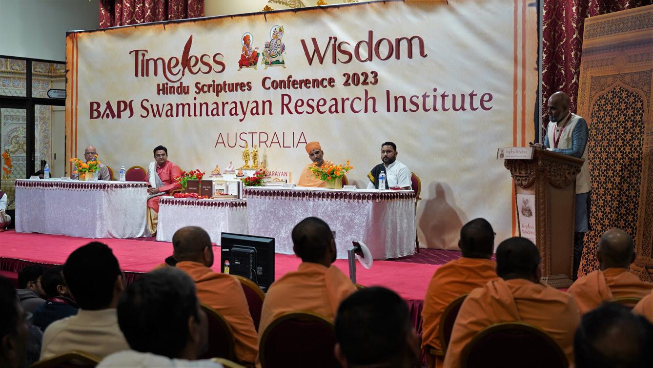 The special evening assembly titled “Timeless Wisdom – Hindu Scriptures” Conference by BAPS Swaminarayan Research Institute Australia was held at BAPS Shri Swaminarayan Mandir, Green Fields, South Australia on Sunday 09th July 2023. The assembly addressed a gathering of over 1000 guests, 68 eminent leaders and learned delegates from around 27 community organisations.