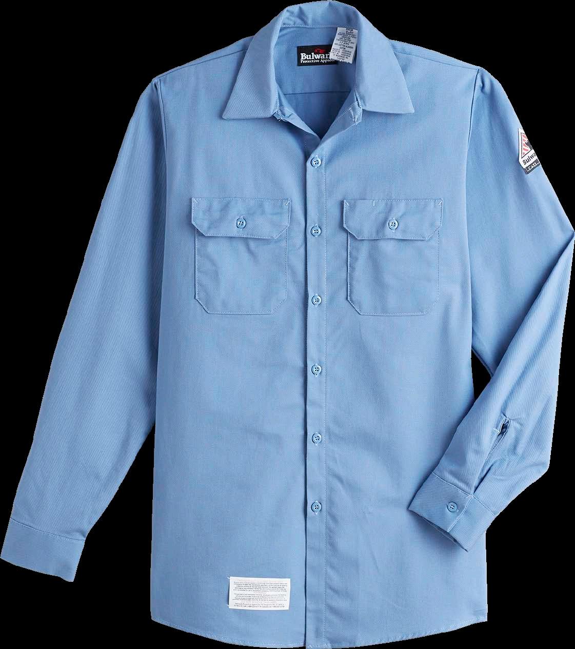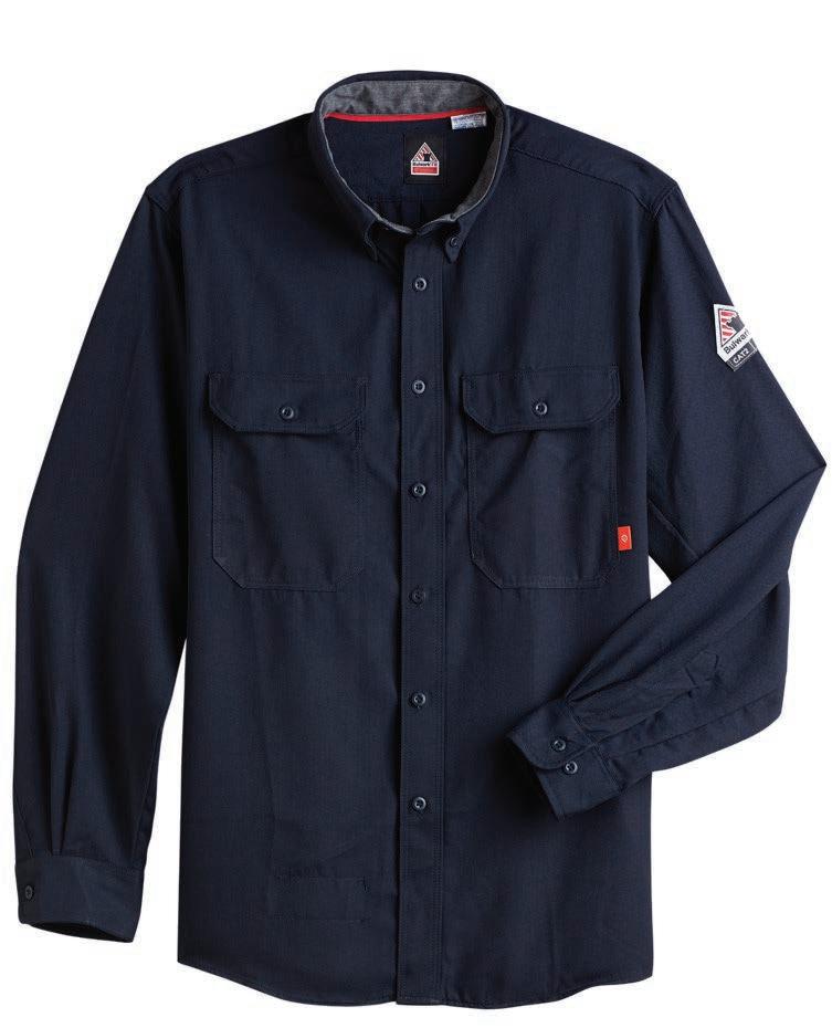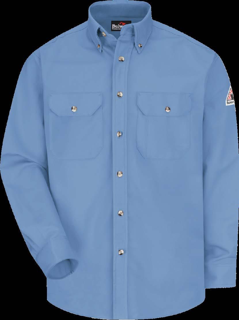 Lined, top-stitched button-down collar and tailored sleeve plackets. Includes two chest pockets with flaps. 7 oz, ATPV 8.7, ARC 2