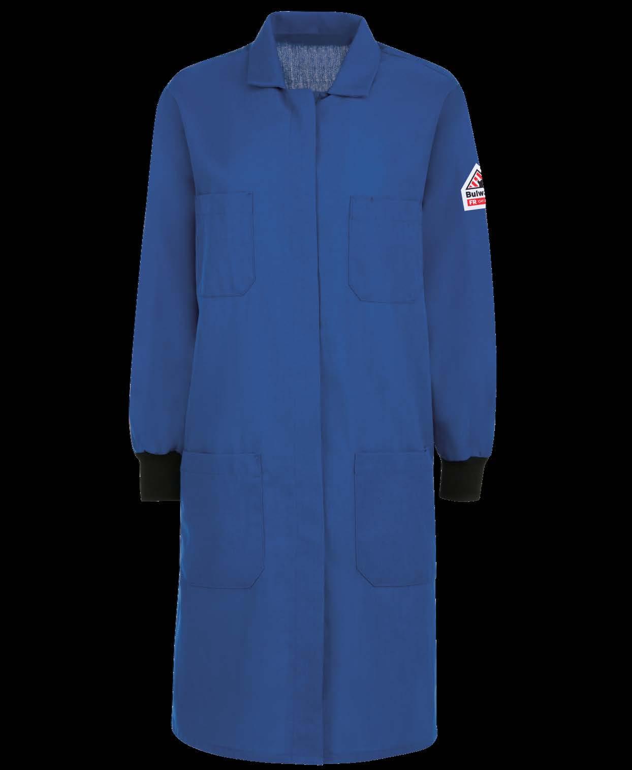 Two large double-stitched lower-front patch pockets. Two double-stitched chest pockets. Knee length, worn directly over street clothes. 4.5oz, ATPV