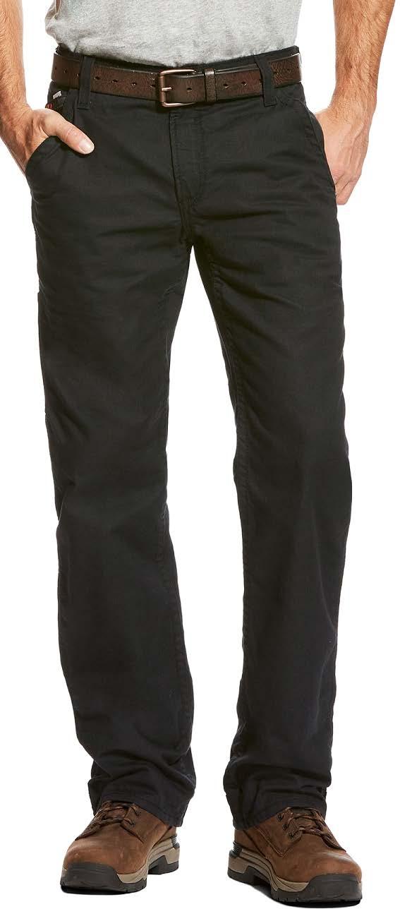 Canvas FR pant featuring Rugged Flex® durable stretch technology. Cell phone pocket on right leg and utility pocket on left leg.