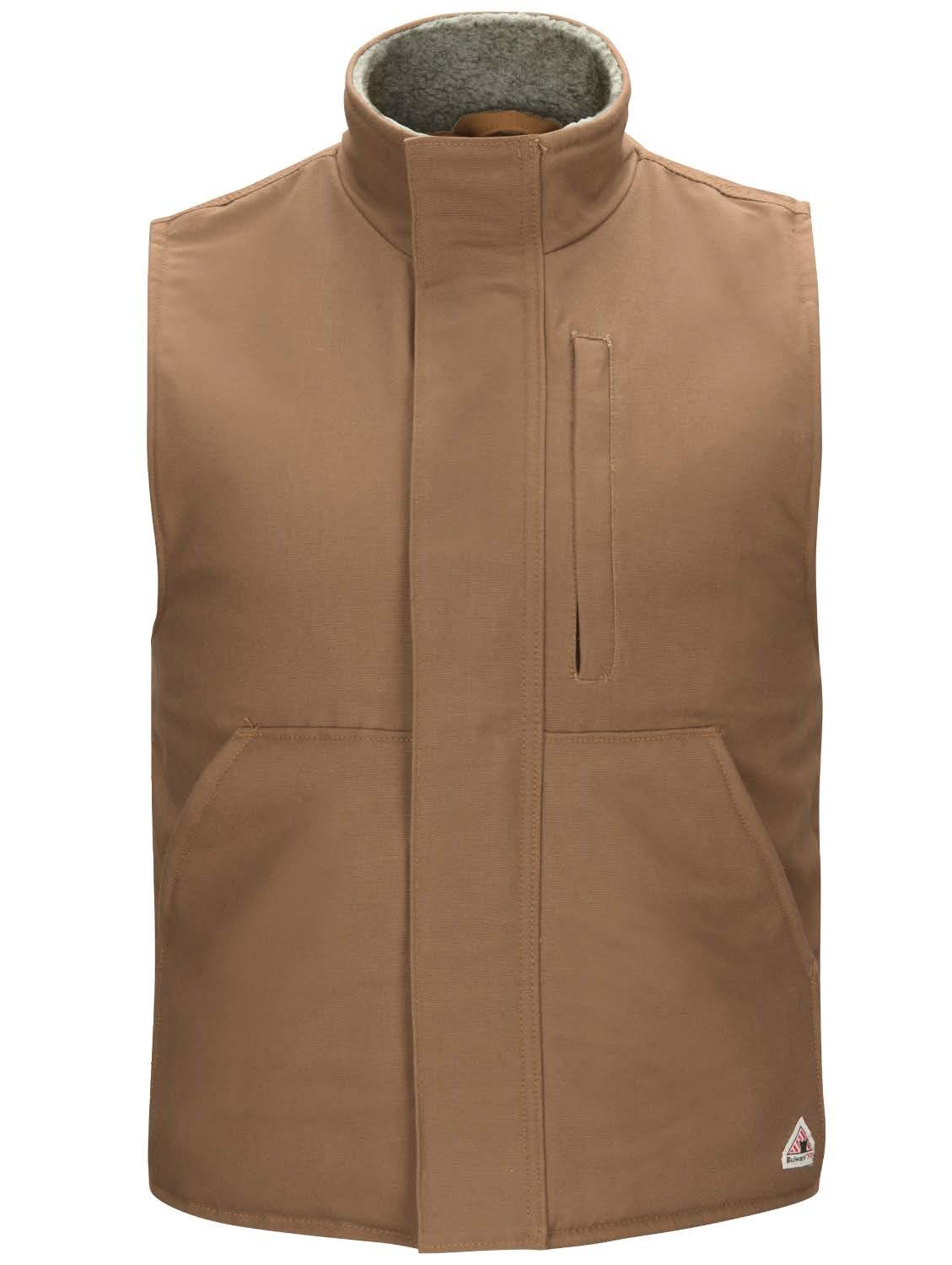 Can be worn separately or combined with the 118140 Nomex® Essentials FR Bomber Jacket, 115540 Enhanced-Visibility Excel FR® Bomber Jacket or 115537 Excel FR® Bomber Jacket for added warmth. Four concealed snap-front closures. Rib-knit collar. Two large inset slash-welted pockets and one inside chest pocket.