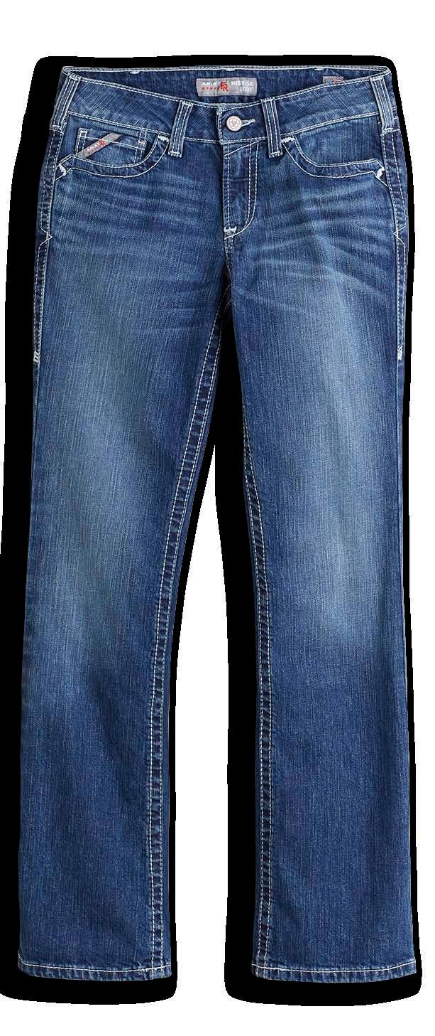 Mid-rise jean sits slightly below the waist with a higher rise in back for added coverage. Features Rugged Flex® durable stretch technology for ease of movement.