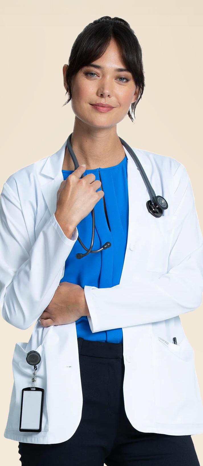 These shorter, tailored lab coats are designed for healthcare professionals in clinical environments where agility is key, offering a comfortable and professional fit.