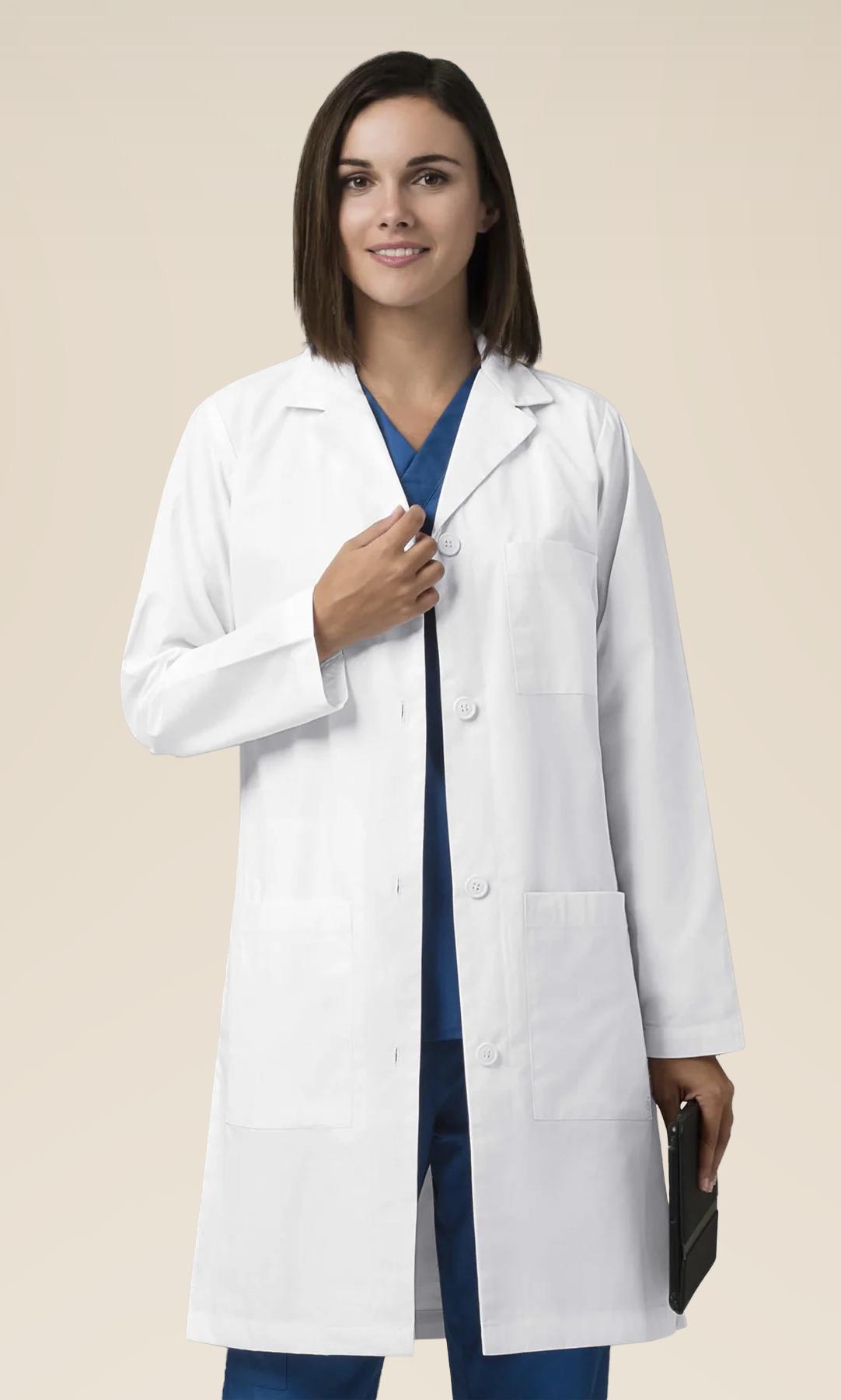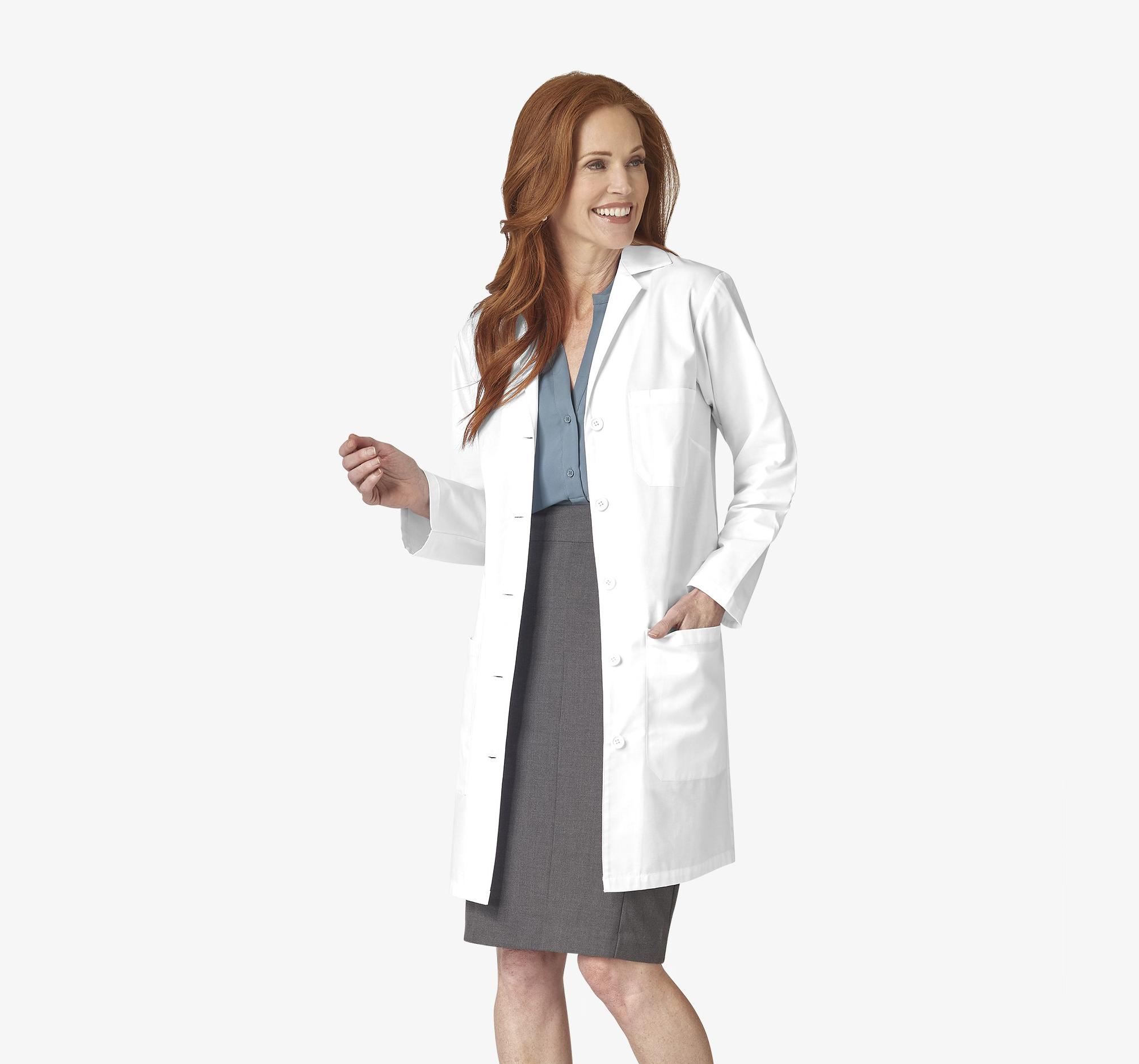 A longer lab coat provides additional protection and coverage with a classic, mid-thigh or above the knee cut.