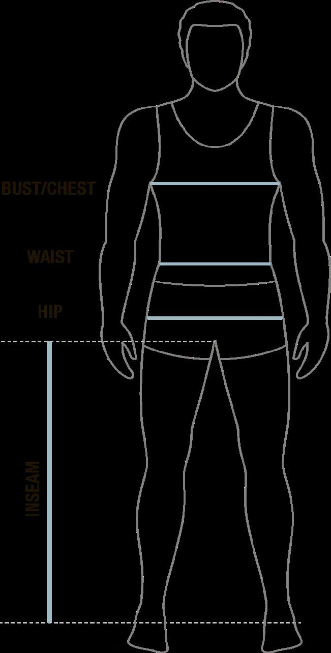 WAIST: Measure around your waist where you normally wear your pants. Keep one finger between the tape and your body to allow ease for fit.