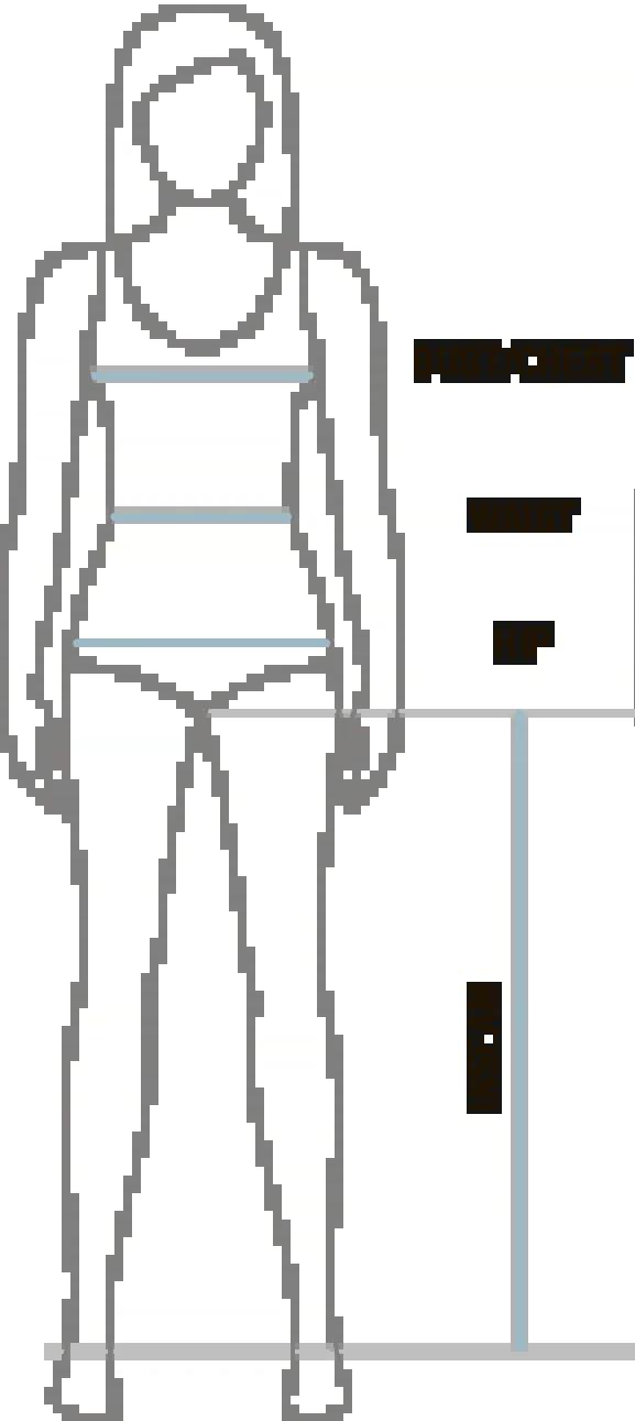 HIPS: Stand straight with feet together and measure around the fullest part of the hips (about 8” below natural waistline), keeping tape measure parallel to floor.