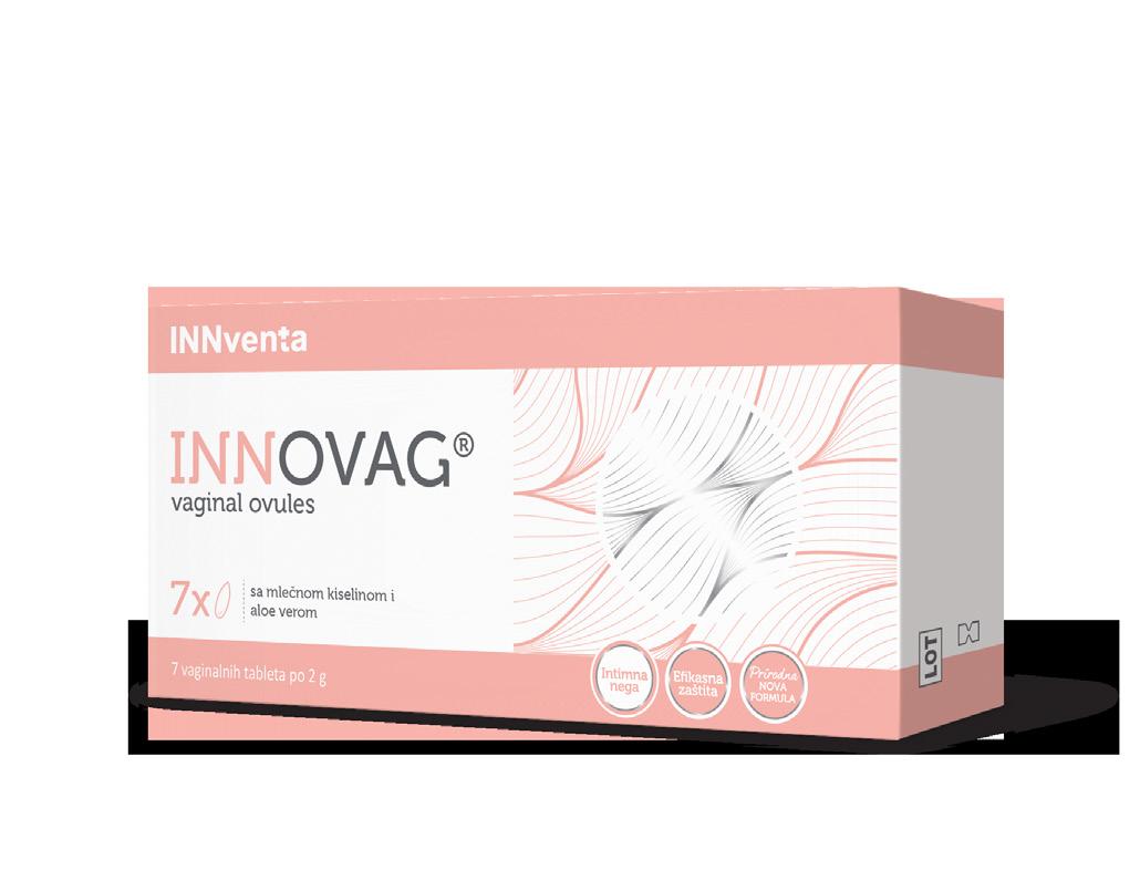 INNOVAG® vaginalne ovule sa zaštitnim, obnavljajućim i umirujućim dejstvom se preporučuju za lečenje i prevenciju vaginoze i bakterijskog i gljivičnog vaginitisa. Jedinstvena formulacija sa hlorheksidinom ostvaruje snažno antiseptično delovanje, a zahvaljujući prisustvu prirodnog ekstrakta propolisa bogatog polifenolima, mlečne i hijaluronske kiseline, INNOVAG® vaginalne ovule pospešuju regeneraciju vaginalne sluzokože. Ova jedinstvena formulacija sinergetičkim delovanjem aktivnih principa, obezbeđuje obnavljanje vaginalne mikroflore i uspostavljanje optimalnih pH vrednosti vaginalne sluznice.