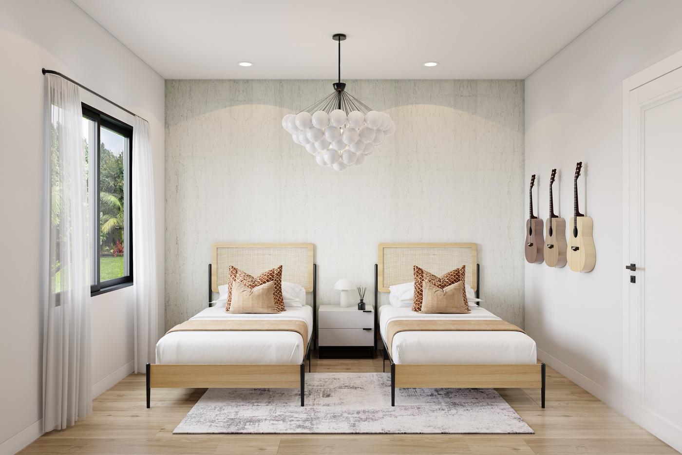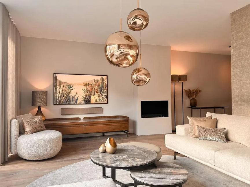 The neutrals that offset the blue give over the refreshing and modern aura The furniture chosen for this design is understated while still appearing warm and inviting