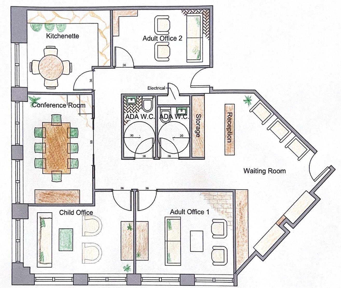 The Blissful Butterfly Therapy Center is a psychologist s office in the tranquil suburb of Montclair, New Jersey The Milky whites, warm woods, and lush green tones bring the peaceful beauty of nature indoors Its modern, nature-inspired design creates a serene ambiance where clients of all ages can feel safe to share their concerns and face challenges