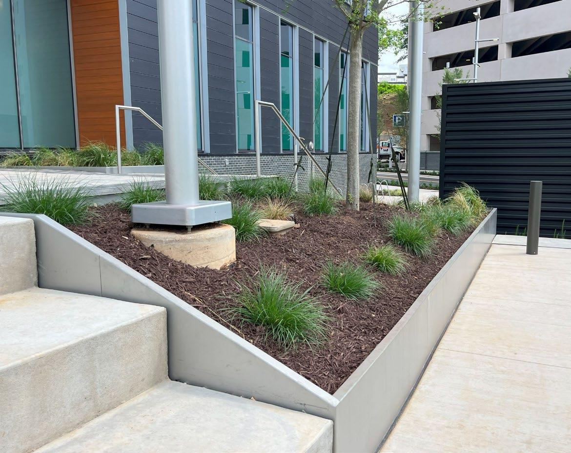 Planters to be anchored to concrete using 3/8" min anchors. Base plates can be added to planter systems that will not be an- chored to concrete.
