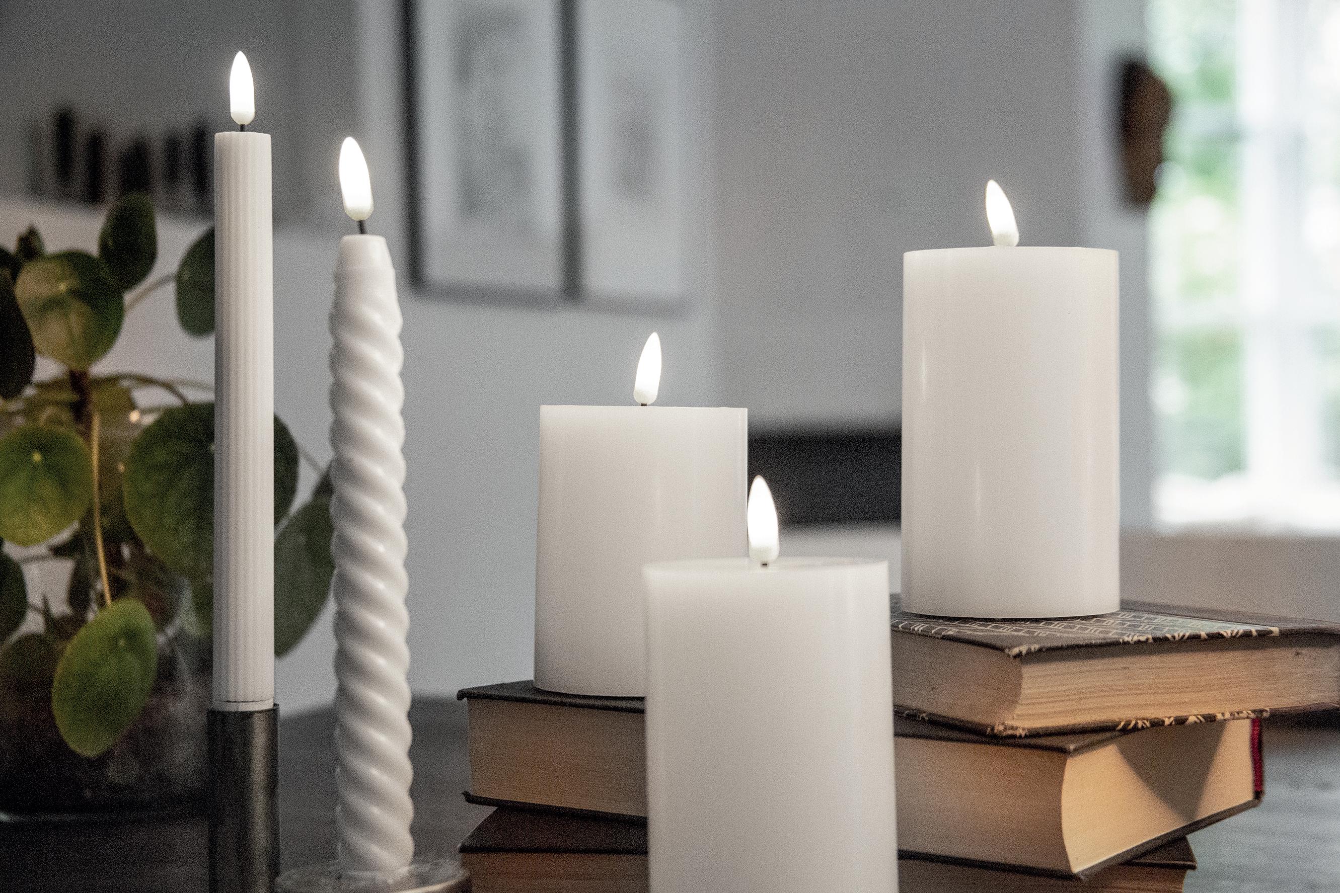 Et autentisk LED lys i ægte voks, der til forvandling ligner et traditionelt stearinlys med en flamme, der virker ægte og levende. Dette skabt med paraffin og innovativ teknologi.