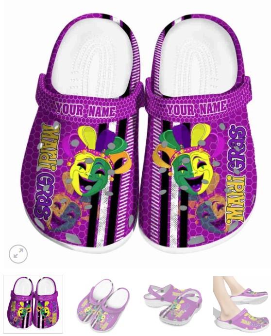 Customized Purple Sandals Mardi Gras Contrasting Stripes Clogs For Kids And Adults