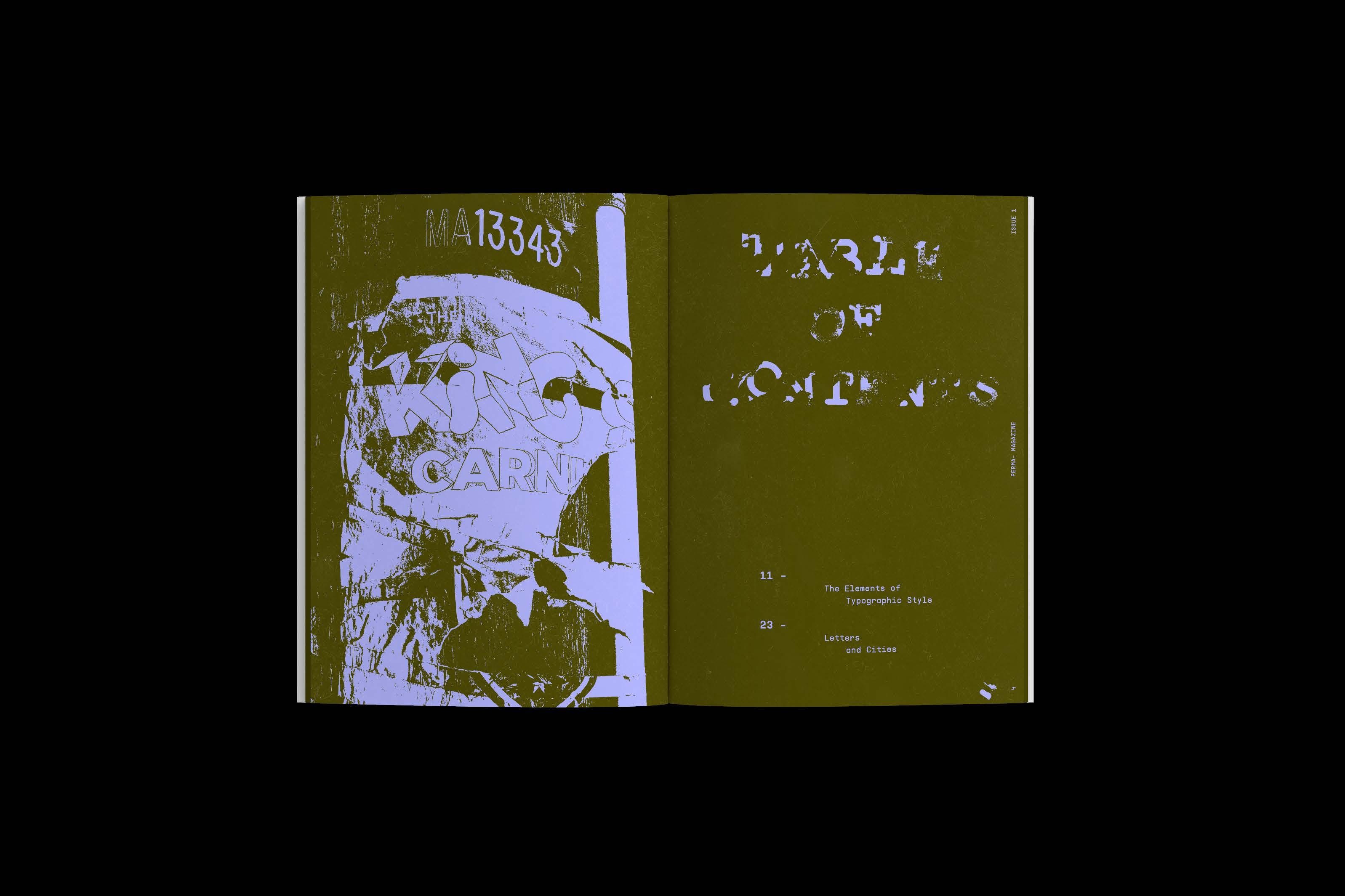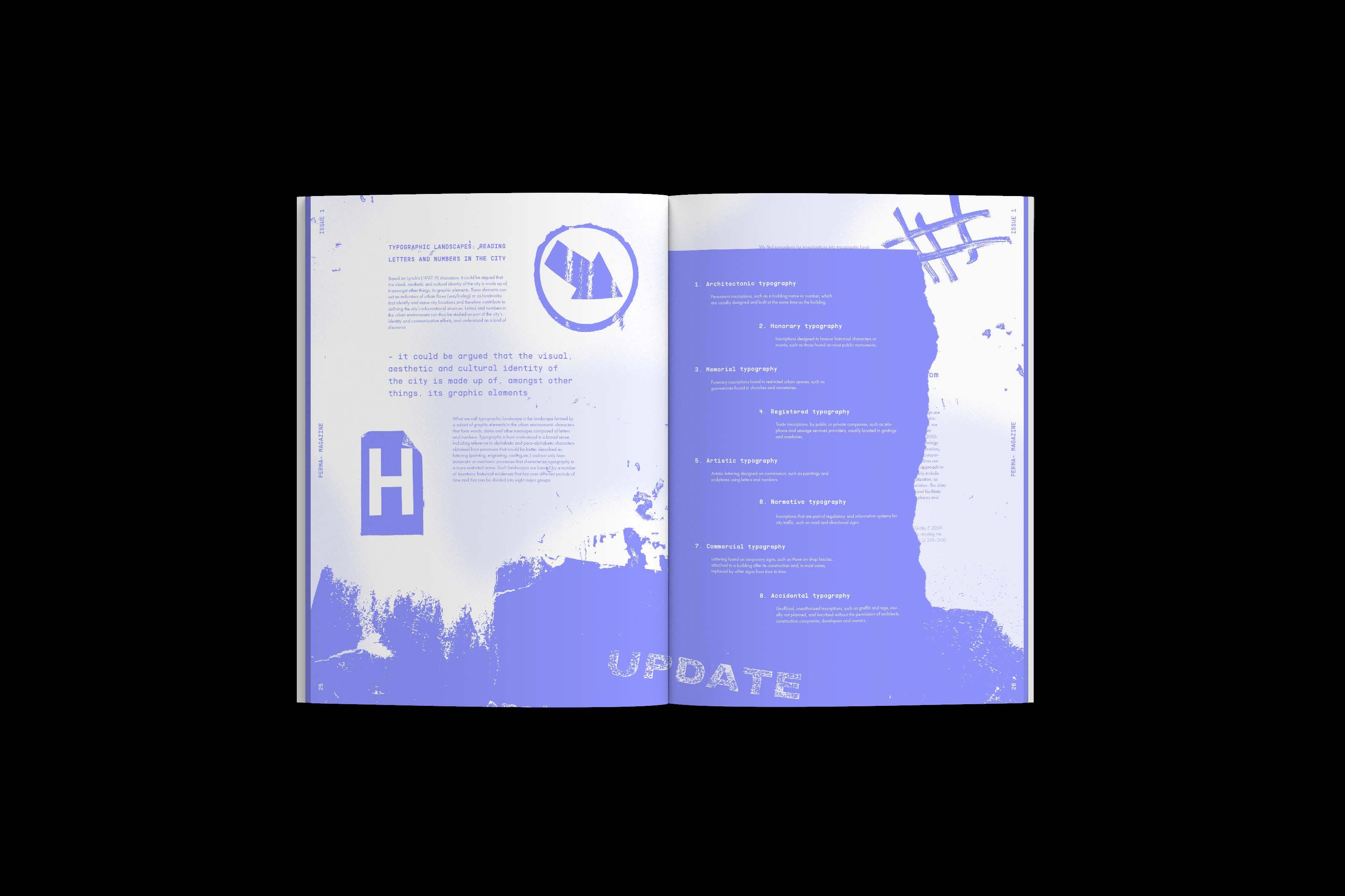 This magazine captures the permanency of graphic systems in the ever-changing urban landscape. Directed towards visual communication designers and design enthusiasts, this magazine explores how these systems co-exist or either challenged. It uncovers the patterns that integrate typography into our societal and cultural identity.