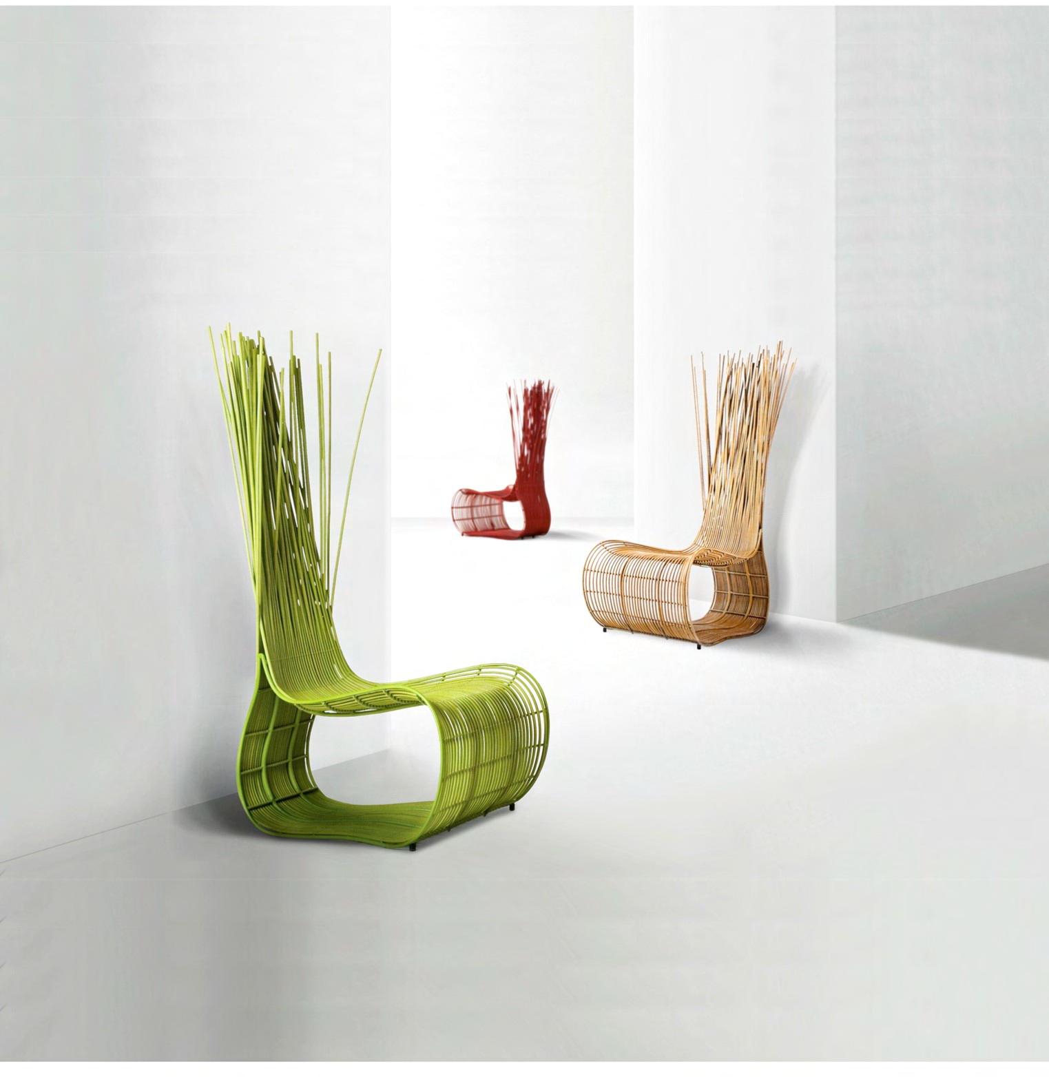 The way his furniture is designed is light and airy, in full contrast to the use of his rattan and steel materials. With chairs that blossom outward, and supple seats that look like bright petals, each piece is rich in decoration and a true showcase of the versatility of local materials.