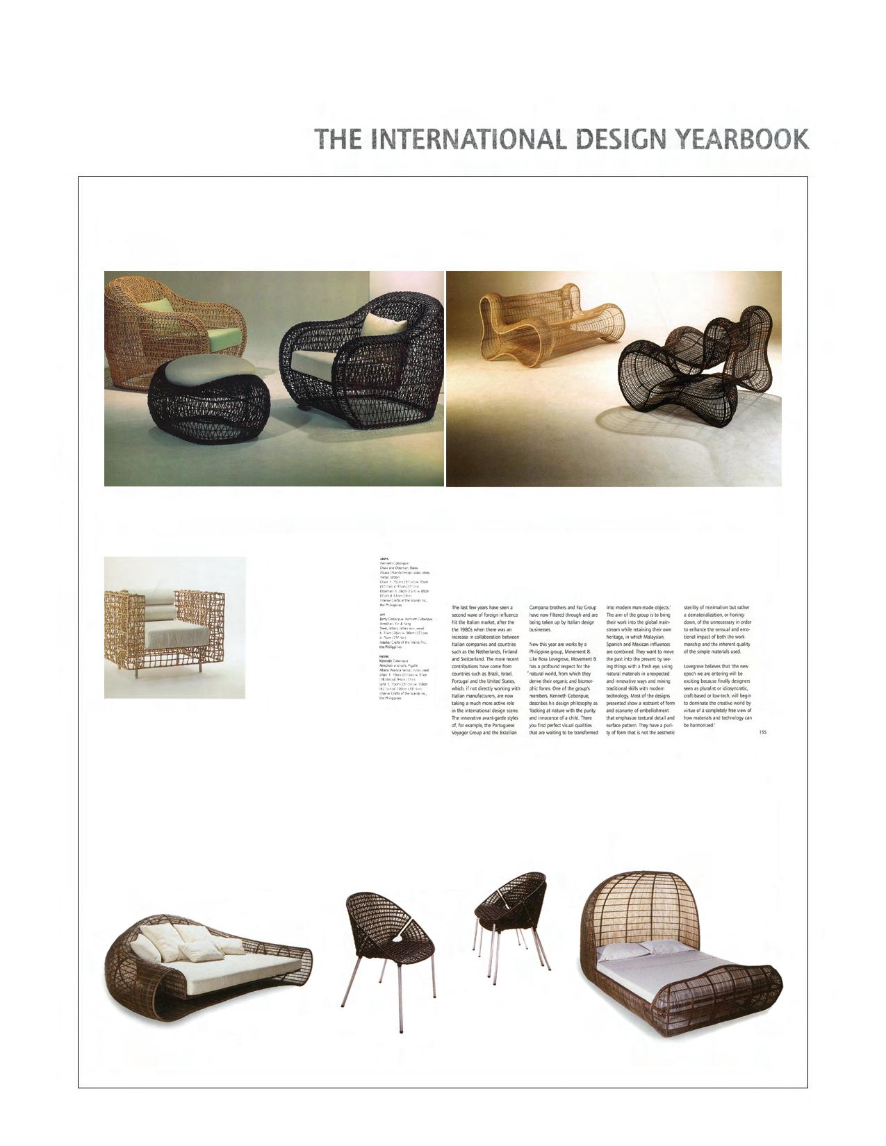 The last few years have seen a second wave of foreign influence hit the Italian market, after the 1980s when there was an increase in collaboration between Italian companies and countries such as the Netherlands, Finland and Switzerland. The more recent contributions have come from countries such as Brazil, Israel, Portugal and the United States, which if not directly working with Italian manufacturers, are now taking a much more active role in the international design scene. The innovative avant-garde styles of, for example, the Portuguese Voyager Group and the Brazilian Campana brothers and Faz Group have now filtered through and are being taken up by Italian design businesses.
