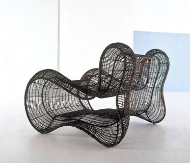 New this year are works by a Philippine group, Movement 8. Like Ross Lovegrove, Movement 8 has a profound respect for the natural world, from which they derive their organic, and biomorphic forms. One of the group’s members, Kenneth Cobonpue, describes his design philosophy as looking at nature with the purity and innocence of a child. There you find perfect visual qualities that are waiting to be transformed into modern man-made objects’. The aim of the group is to bring their work into the global mainstream while retaining their own heritage, in which Malaysian, Spanish and Mexican influences are combined. They want to move the past into the present by seeing things with a fresh eye, using natural materials in unexpected and innovative ways and mixing traditional skills with modern technology. Most of the designs presented show a restraint of form and economy of embellishment that emphasize textural detail and surface pattern. They have a purity of form that is not the aesthetic sterility of minimalism but rather a dematerialization, or toning down, of the unnecessary in order to enhance the sensual and emotional impact of both the workmanship and the inherent quality of the simple materials used.