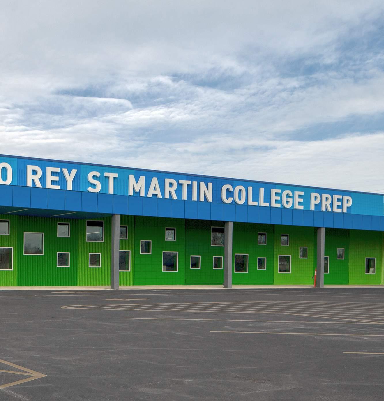 The renovation and construction assignment of Cristo Rey St. Martin College Prep required the comprehensive transformation of an abandoned big box store into a contemporary educational facility serving over 400 students. The former building structure had no identity and no physical or emotional connection to the community. The design-build team’s challenge was to break down those barriers and develop an innovative design that would inspire the students, faculty, administration, and community.