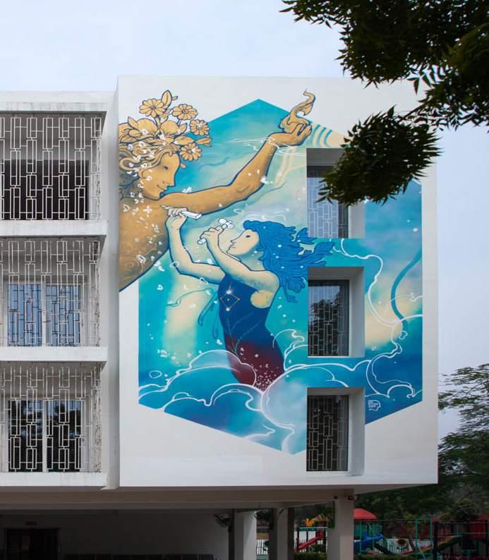 The interior design scheme is based on the idea of bringing a youthful and spirited ambience into each space. The corridors form a unifying element throughout the school and are transformed into spaces where students can express themselves through drawings, display boards and artworks. Care is taken to ensure that chalkboards and display boards are at an accessible height for children, making it an inclusive and engaging environment.