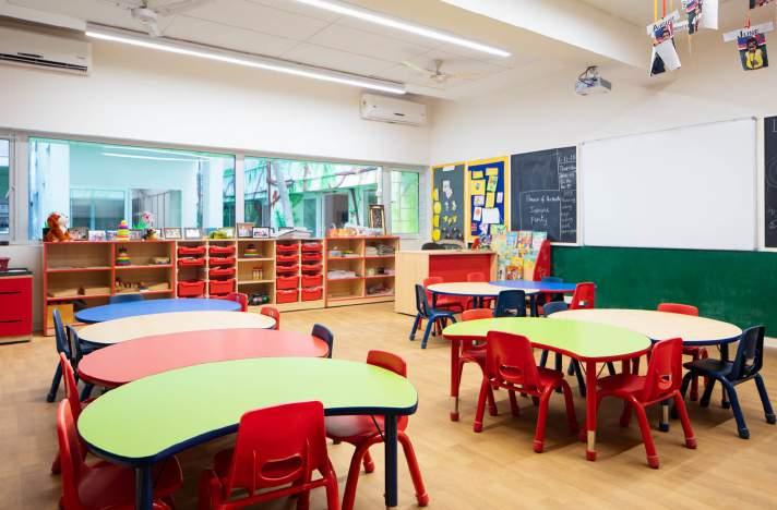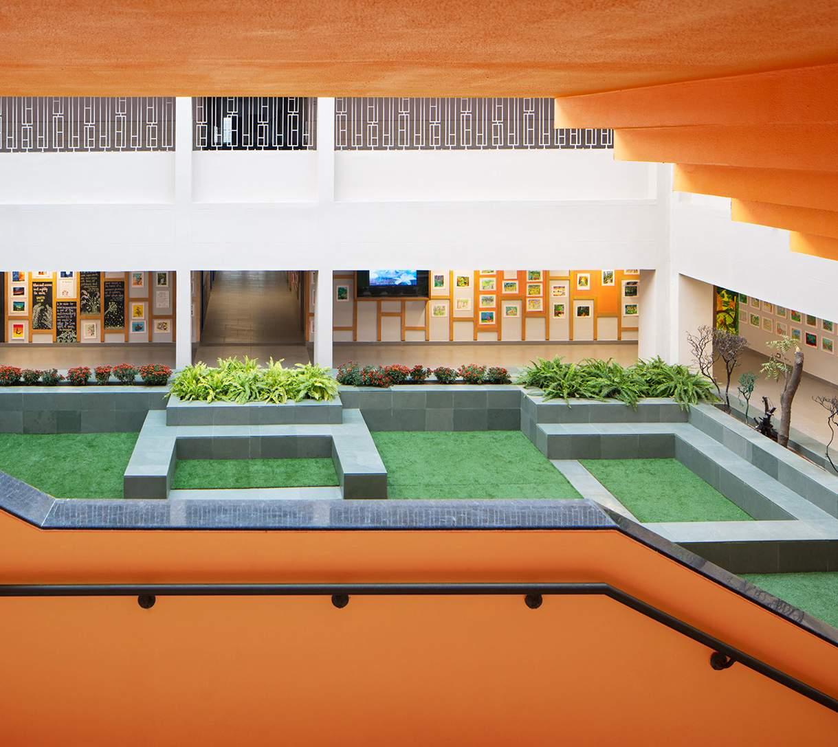 There are separate HVAC units for each space, enabling specialised attention to light, ventilation and temperature. The school is also equipped with specialised ‘smart’ classrooms that are fully enabled with IT and AV. Classrooms are fitted with LED light fixtures and high performance fenestrations.
