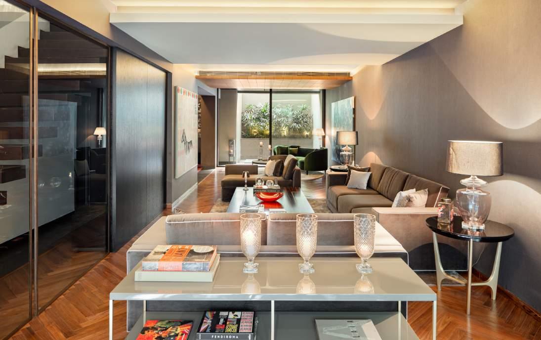 This floor’s interior refurbishment reflects true contemporary design ideation, bringing together, in equal measure, aesthetic refinement, and accessible comfort. The resulting approachable and liveable spaces effortlessly achieve the delicate, elusive balance between a house and a home. Traversing through the floors, one finds iconic art pieces unassumingly adorning the walls, rendering each space with a distinctive ambience and yet appearing a part of the overarching design scheme.