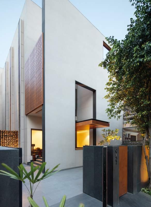 bodes and commercial spaces are akin to authored narratives of the occupants in question. In commercial properties the narrative assumes the line and length of the corporate vision, mission and end goals. In residences the story becomes more personal and biographical. A biography which is scripted by the client and executed by the designer. Nestled in the leafy by lanes of an urban pocket in the heart of New Delhi, the Envelope is a contemporary home for a