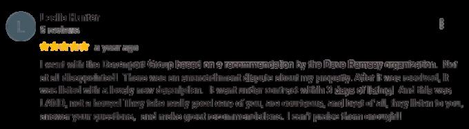 I went with the Davenport Group based on a recommendation by the Dave Ramsey organization Not at all disappointed! There was an encroachment dispute about my property After it was resolved, it was listed with a lovely new description It went under contract within 3 days of listing! And this was LAND, not a house! They take really good care of you, are courteous, and best of all, they listen to you, answer your questions, and make great recommendations I can't praise them enough!!