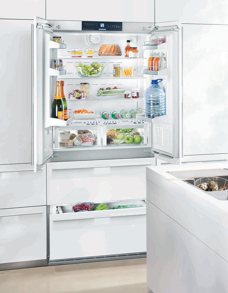 522L Fully Integrated French Door Refrigerator with Dual Drawers ECBN 6256 Liebherr offers top of the line features in this unit including BioFresh, an IceMaker and a SoftSystem closing mechanism. Not to mention the wide open space inside this unit which can easily fit all of your large platters and upright bottles.