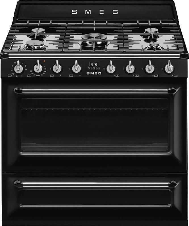 90cm ‘Victoria’ Dual Fuel Freestanding Cooker TRA90BL2 With Smeg’s Thermoseal environment, you can achieve succulent roasts, crisp pastries and more. Whip up stir fries and simmer all your favourite sauces on the 5 zone gas burner. 9 oven functions, 126L capacity.
