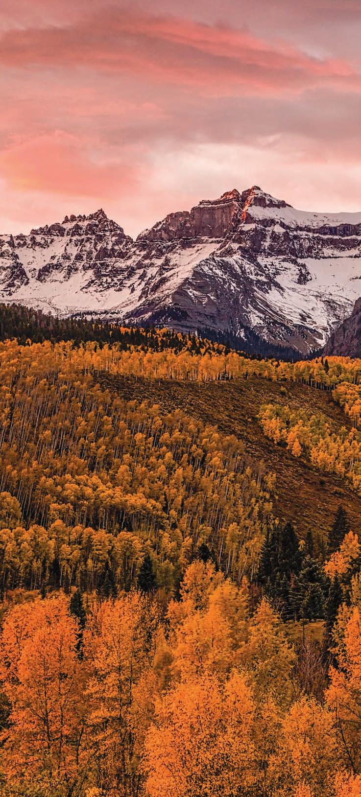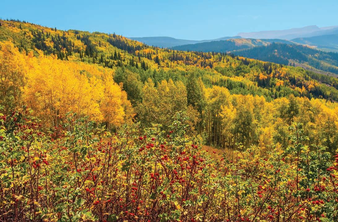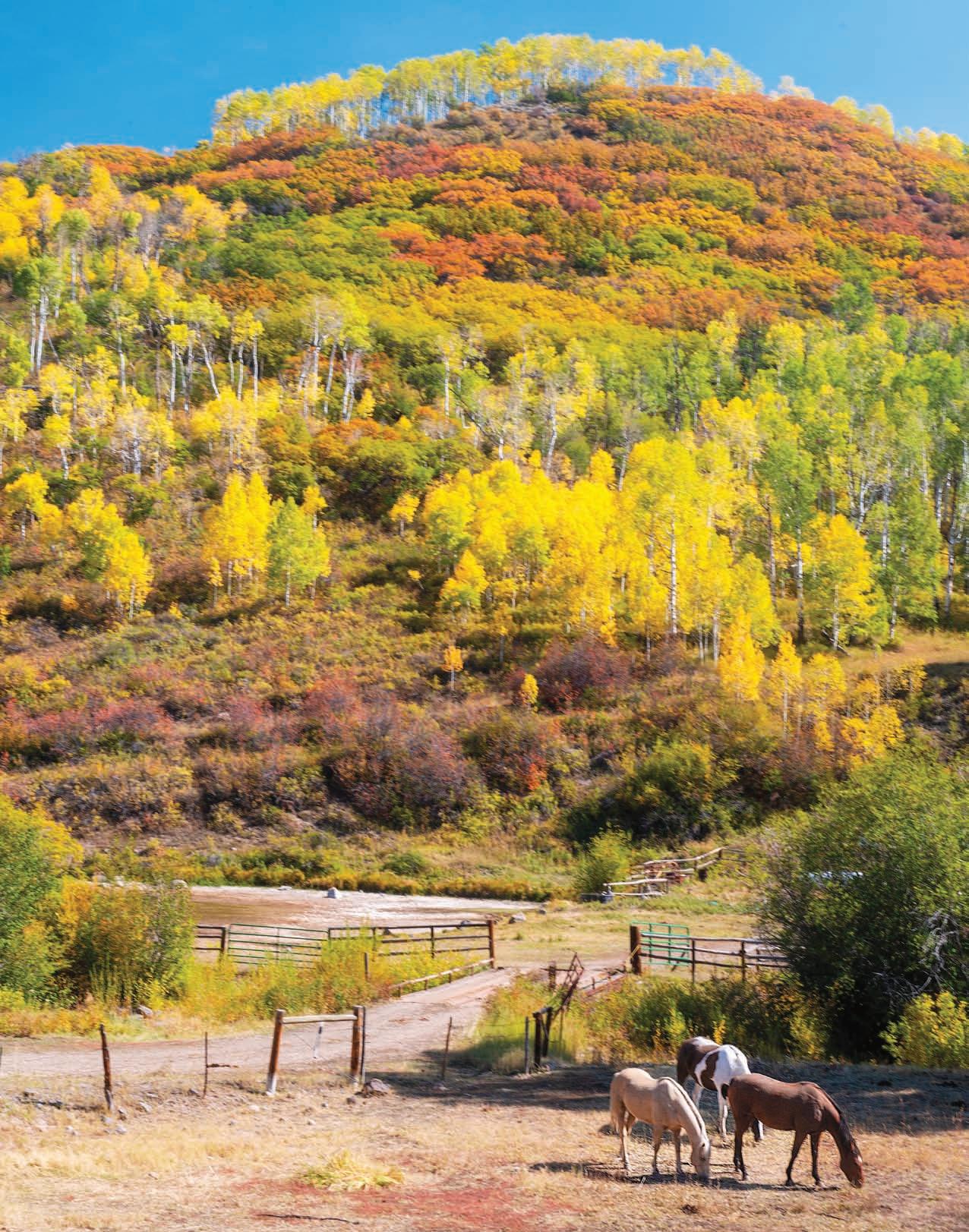 Colorful Colorado mountainsides are blanketed in gold and orange during the height of the fall season. Story begins on page 22.