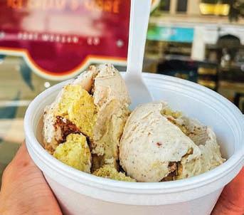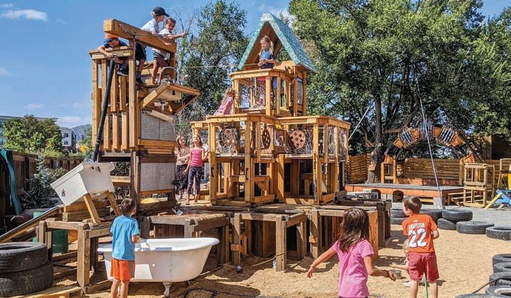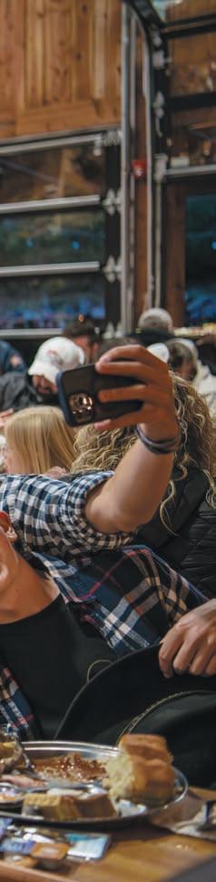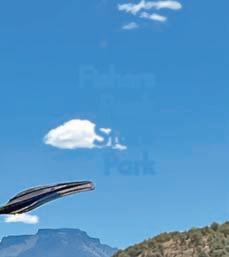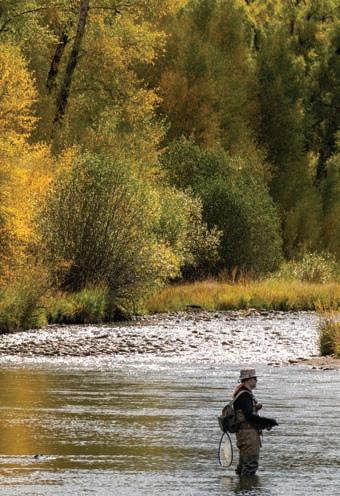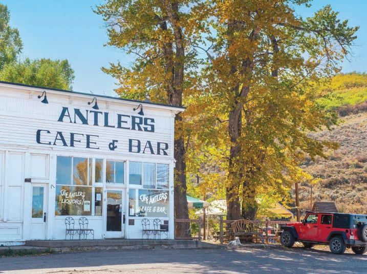 To satisfy my wife’s longing for an Italian cruise, I booked us on a Float ’n’ Dine voyage o ered by ree River Resorts in Almont, 16 ½ miles down the road from the campground. From there, we would ra 10 miles down the velvety ow of the Gunnison River to Garlic Mike’s Restaurant, which sits along the river’s banks north of Gunnison. With our guide, Joelle, at the oars, we oated past streamside anglers, dri ed gently under bridges and glided past the backyards of riverfront homes. Reaching the restaurant, we sipped Chianti and dined on ne Italian cuisine while ensconced in a piazza-like outdoor setting complete with deer occasionally peering at us from the trees.